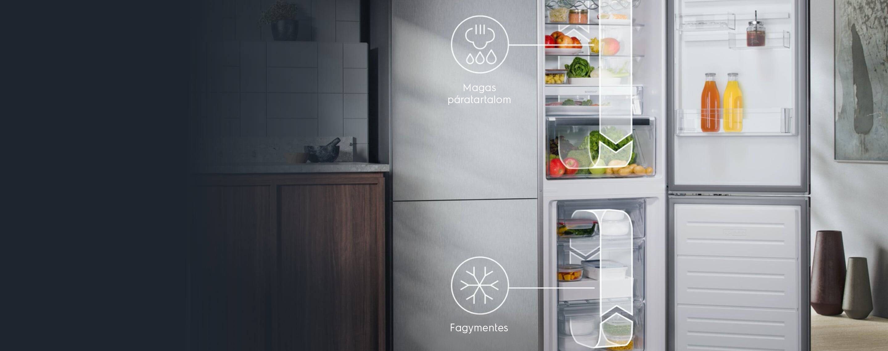 Kombinált hűtő-fagyasztó - egy hűtőtérből és egy fagyasztótérből álló készülék, ahol a két rész külön ajtóval nyitható. Válasszon felül- vagy alulfagyasztós modelljeink közül.