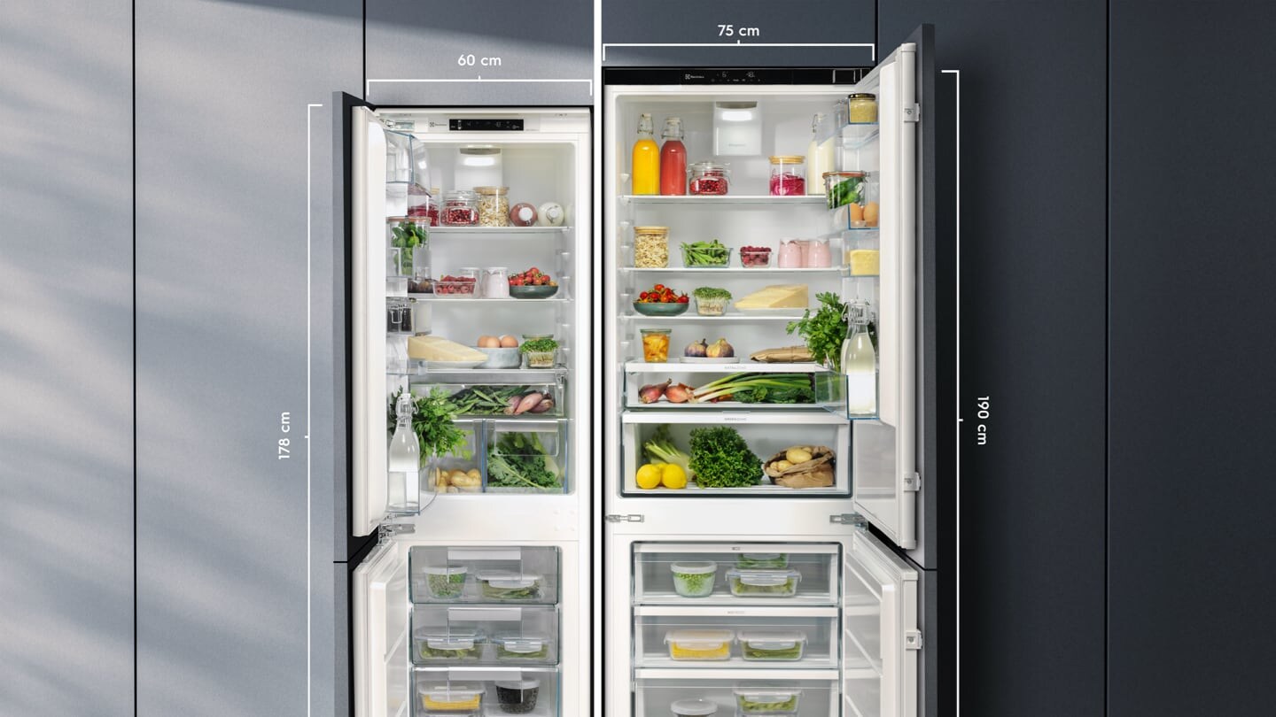 A beépíthető hűtő-fagyasztók általában szabványméretűek, így a konyhaszekrény ajtaja mögé rejthetők. A szabadonálló modellek magassága viszont változhat. 60 cm-től egészen 190 cm-ig terjednek, mint például MaxiSpace hűtő-fagyasztónk, amely 45%-kal nagyobb kapacitást biztosít, mint a hagyományos beépíthető modellek. Termékoldalainkon minden terméknek megtalálja a méretét.