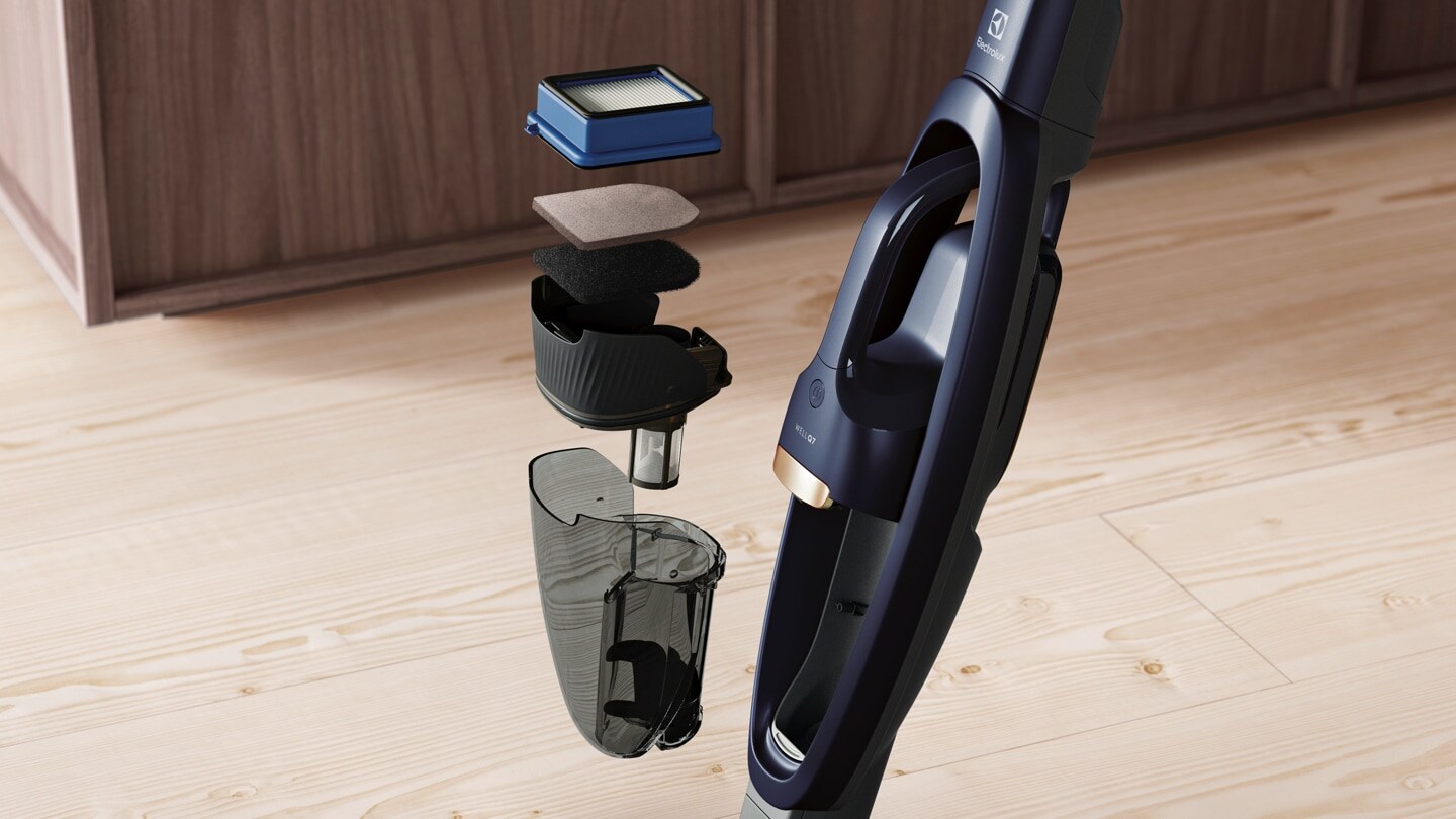 A továbbfejlesztett ciklonrendszernek köszönhetően a szűrő 5x hosszabb ideg bírja, mielőtt eltömődne,*** ezért sokkal ritkábban kell tisztíani és cserélni. A tiszta szűrő segít fenntartani a nagy szívóerőt, így gyorsabb és alaposabb lesz a takarítás.