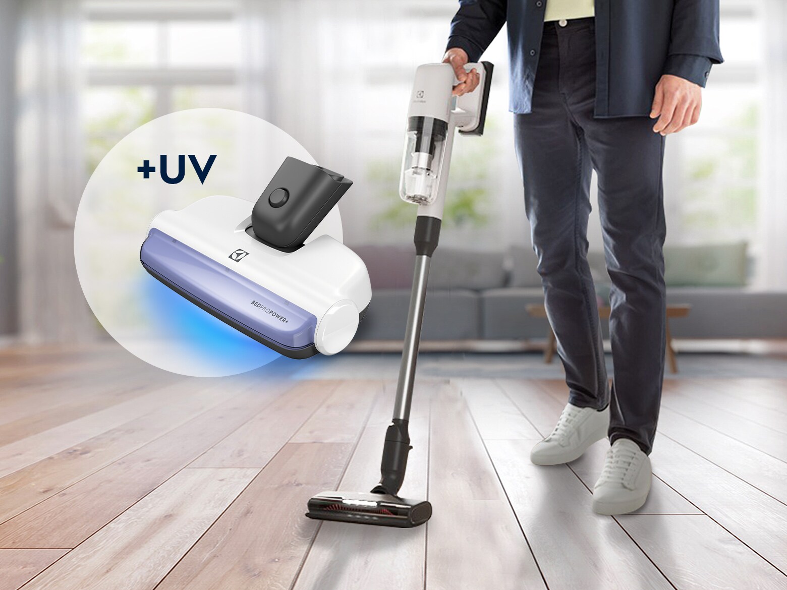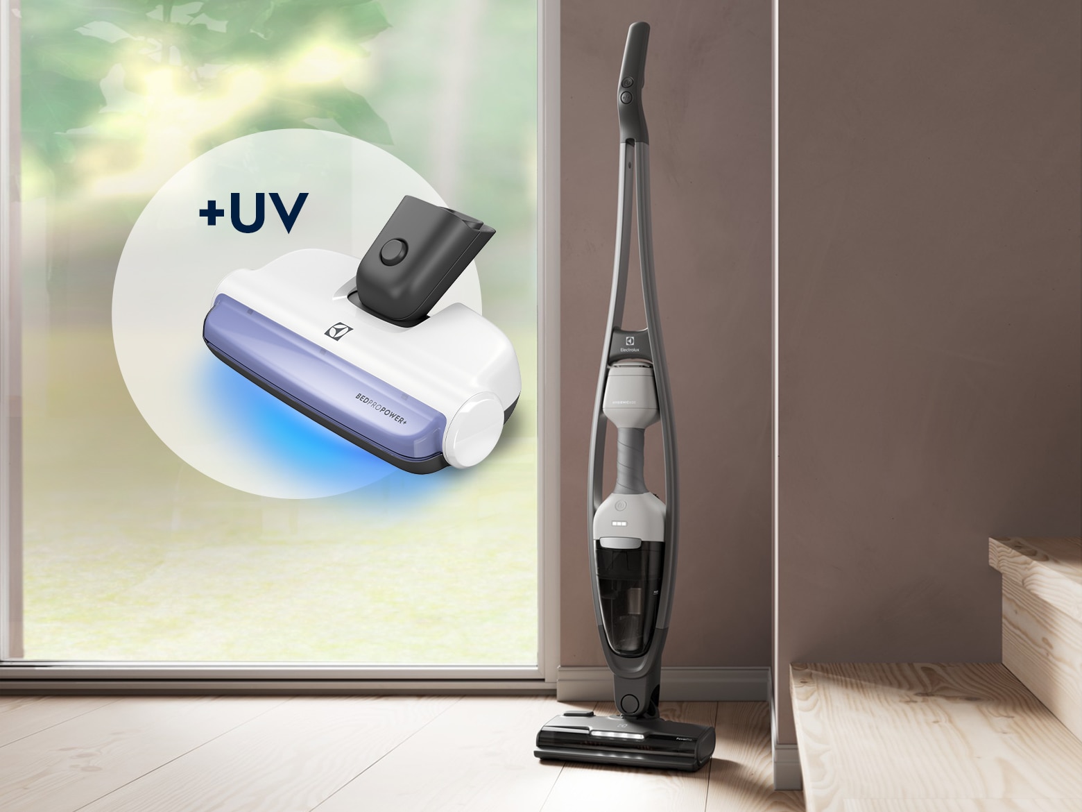 Az ES62HB25UV porszívó nagyteljesítményű, sokoldalú szívófeje a szőnyegről és a kemény padlóról egyaránt hatékonyan távolítja el a piszkot, anélkül, hogy szívófejet kellene cserélni. Ez az eddigi legcsendesebb vezeték nélküli porszívónk*. Az 5-lépcsős szűrőrendszer eltávolítja a 0,3-10 µm méretű mikrorészecskék akár 99,9%-át**, így otthona egészségesen tiszta lesz nap mint nap. A BedProPower™ UV+ szívófej eltávolítja az ágyakrók és kanapékról a finom port, a polleneket, baktériumokat, az UV fény pedig fertőtleníti is a szövetet.