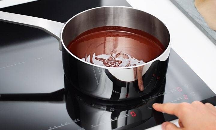 1Olvasszon fel csokoládétOlvasszon fel fél csésze étcsokoládét indukciós főzőlapon, alacsony hőfokon. Kevergesse folyamatosan. Az olvadt csoki homogén állagú és szép fényes lesz.