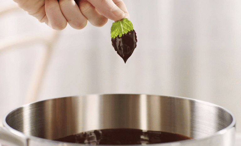Jól esne egy könnyű desszert ebéd után? Kényeztesse magát ezzel az egyszerű finomsággal. A csokoládéba mártott mentalevelek önmagukban is ínycsiklandozóan finomak, de használhatja őket pohárkrémek, fagylaltkelyhek vagy torta díszítéséhez is. Olvassza fel a csokoládét indukciós főzőlapon, alacsony hőfokozaton. Így szép sima, selymes lesz a csokimáz, mint a profi cukrászdákban - és még a vízfürdővel sem kell bajlódnia. A változatosság kedvéért próbálja ki másfajta levelekkel is! Ajánljuk még a bazsalikomot, a zsályát és a levendulavirágot.
