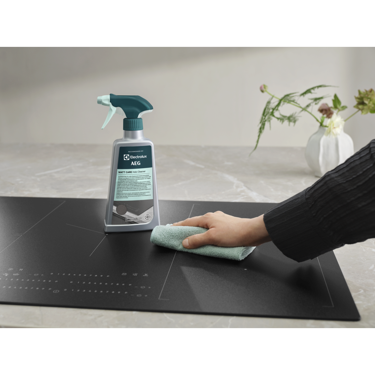 A Matt Care főzőlap-tisztítót kifejezetten a matt üvegkerámia indukciós főzőlapok, köztük a SaphirMatt® és SaphirMatt® SE felületek mélytisztítására fejlesztették ki.* Eltávolítja a makacs zsírt és az odaégett ételmaradványokat, hogy főzőlapja hosszan megőrizze kifogástalan állapotát.