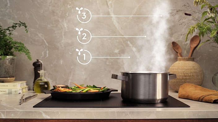 Az Electrolux beépített páraelszívóval rendelkező indukciós főzőlapjai egyszerre biztosítanak letisztult dizájnt és kiemelkedő funkcionalitást. Hatékonyan távolítják el a főzés közben keletkező szagokat, zsírt és gőzt, így nagyobb szabadságot adnak a konyha megtervezésében.