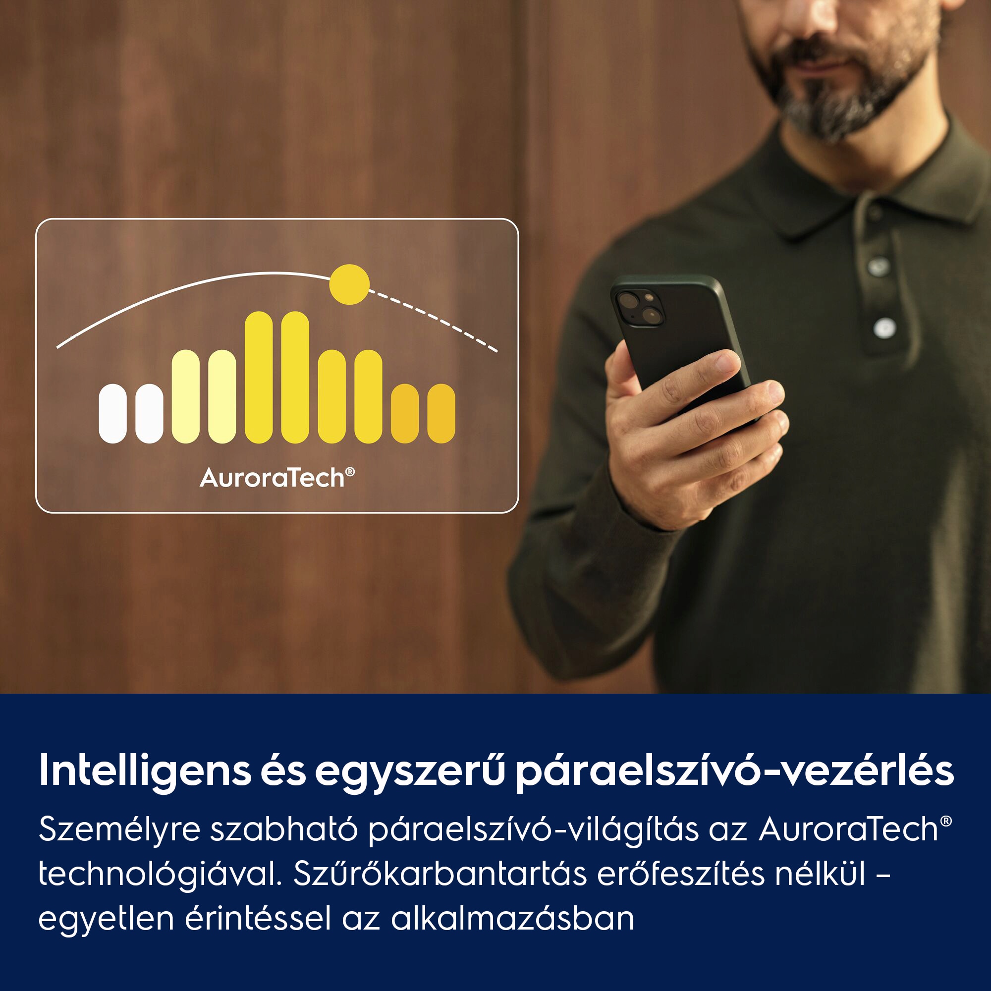 Az AutoSense 900 páraelszívó innovatív szenzora érzékeli a levegőben lévő gőzt, zsírt és szagokat, és automatikusan a megfelelő teljesítményre kapcsol, hogy gyorsan megtisztítsa a levegőt. Így Ön friss konyhai környezetben, zavaró zaj nélkül élvezheti a főzést családjával és barátaival.