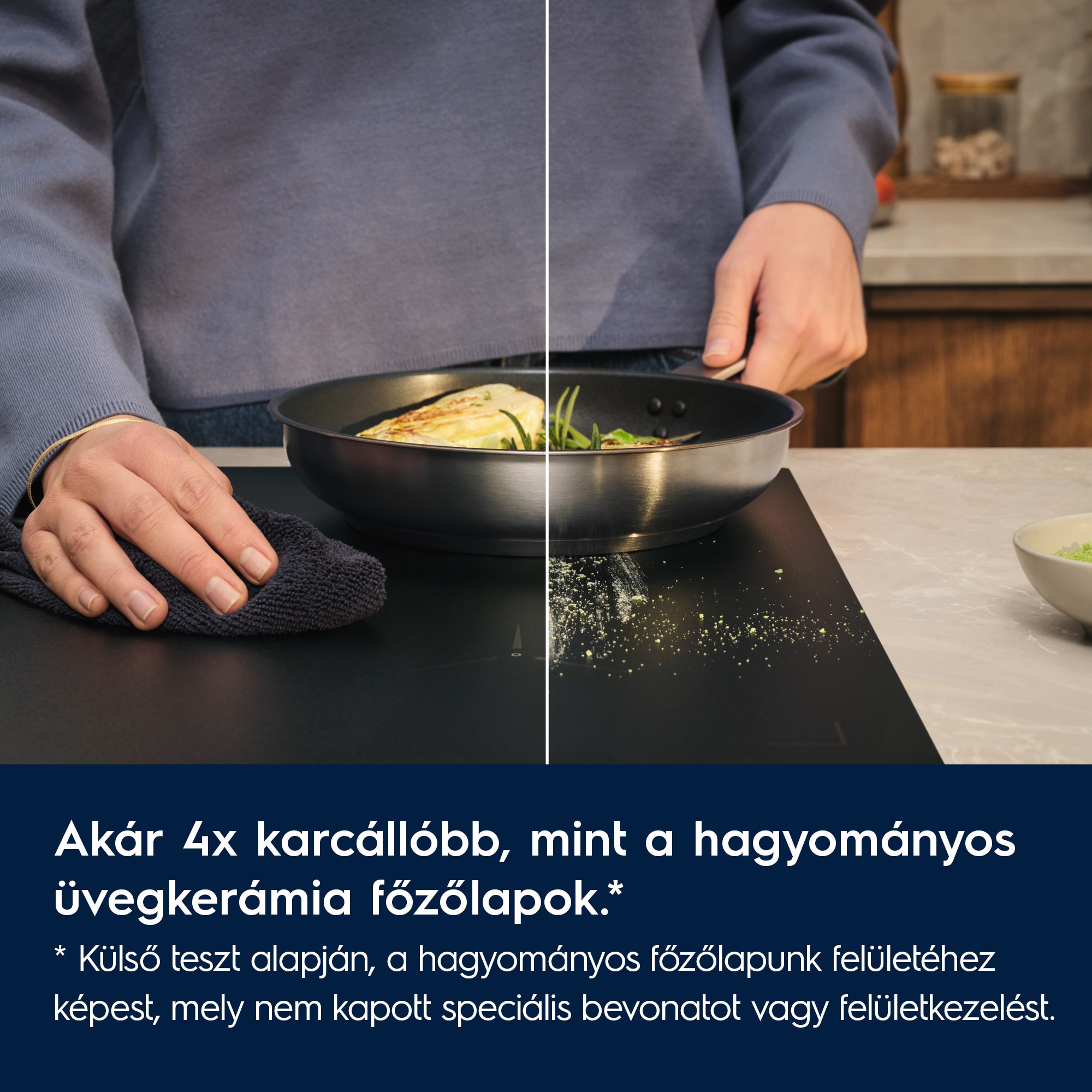 *Külső teszt alapján, hagyományos üvegkerámia főzőlapjainkhoz képest, melyek nem kaptak speciális bevonatot vagy felületkezelést.
