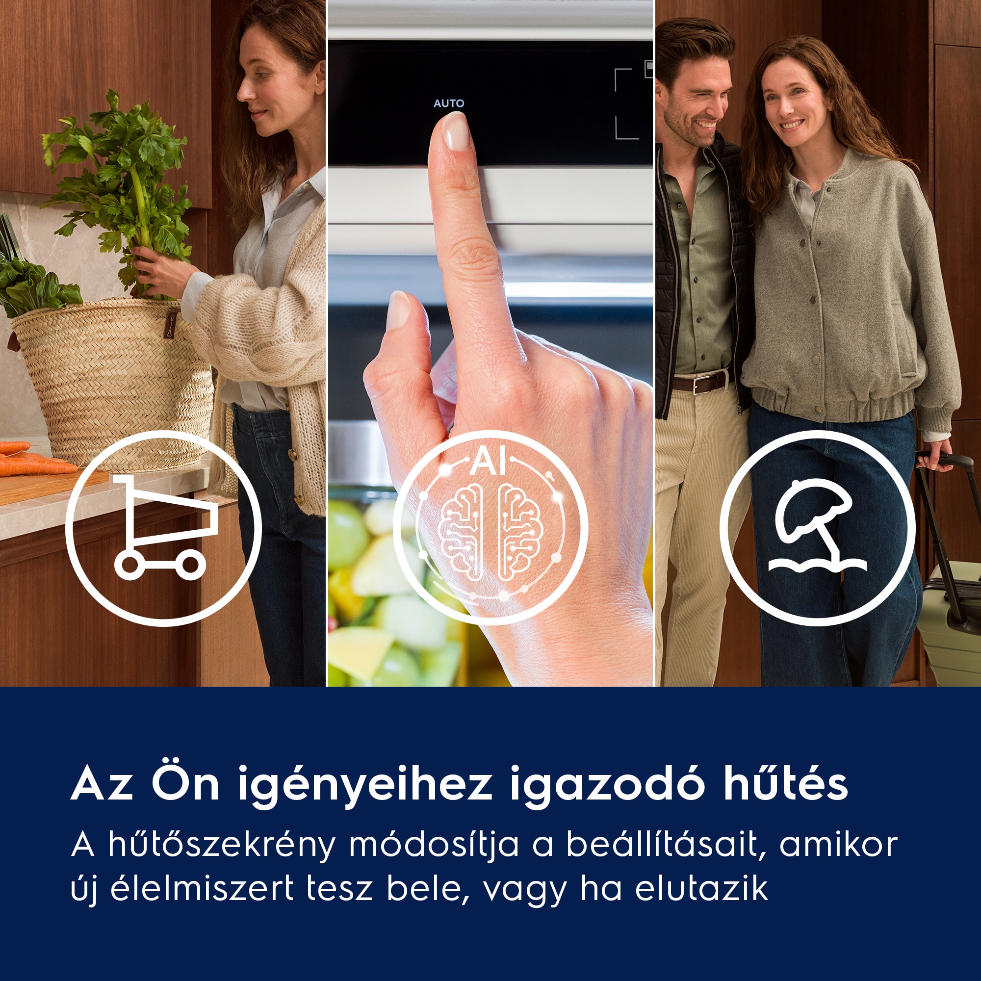 *Az energiamegtakarítás 1780 CB Multichill, 1780 CB TwinTech NoFrost és 1225 Freezer NoFrost készülékeken mérve az AutoVacation mód és gyári alapbeáll. kikapcs. AI Cool Assist funkció összehasonlításával, 25 °C külső hőmérsékleten. A tényl. energiamegtak. a szokásoktól és a körny. hőmérséklettől függően eltérhet.