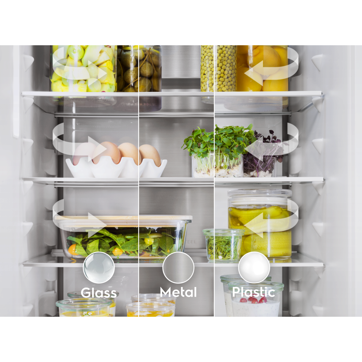 A No Frost GreenZone+ 800 hűtő-fagyasztó hosszabb ideig őrzi meg ételei frissességét. A magas teljesítményű hűtőfiók automatikusan szabályozza a páratartalmat, így védi a gyümölcsöket és zöldségeket. A No Frost technológia pedig megakadályozza a jegesedést, így soha nem kell leolvasztania.