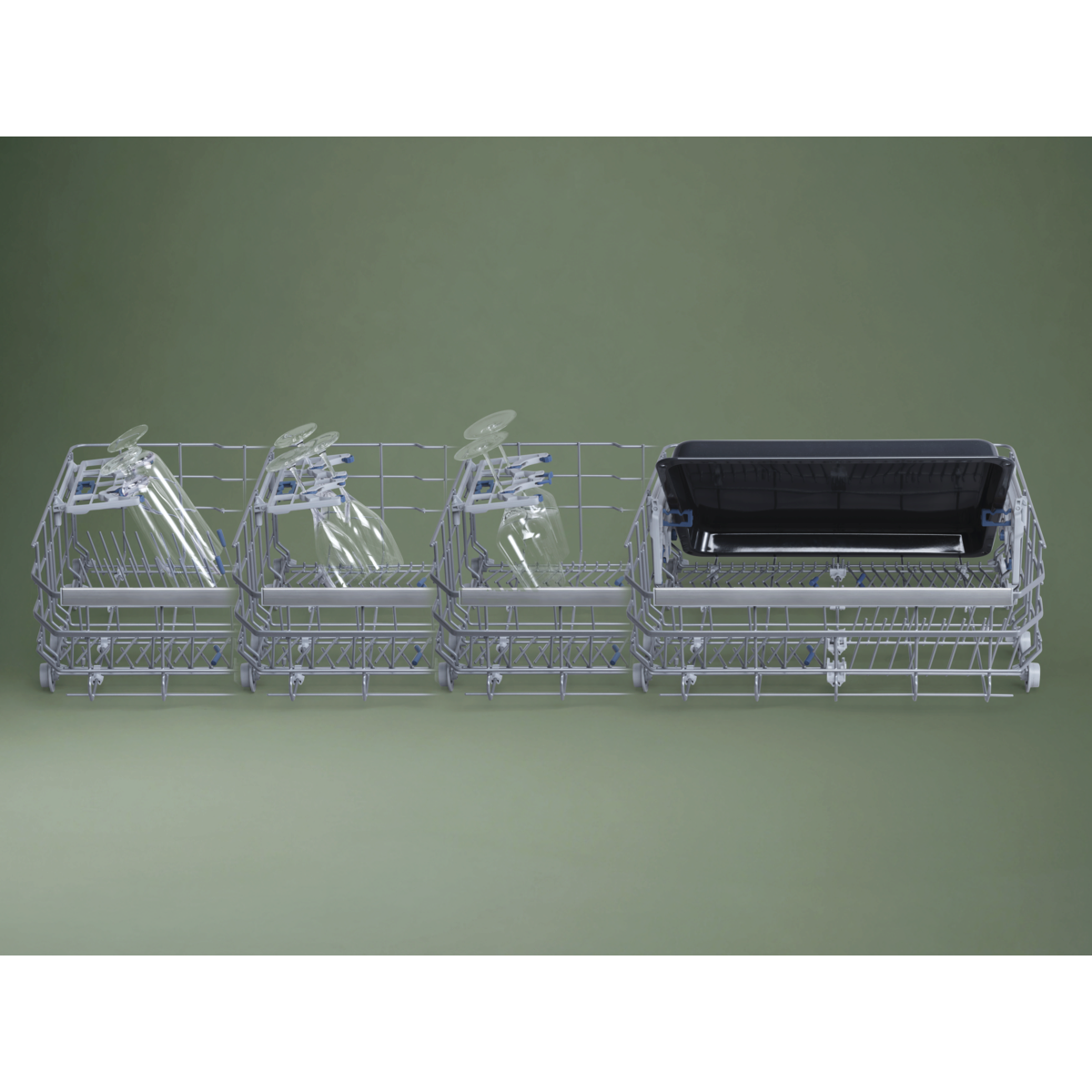 Rugalmas tárolás a sütőtálcáknak, magas és talpas poharaknak is