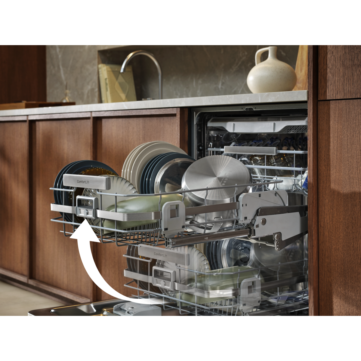 A MaxiSpace 900 belső tere 5 cm-rel magasabb, mégis illeszkedik a hagyományos konyhapultba. A tágas, sokoldalú kosarakban elférnek a kancsók, a borospoharak és a levesestálak is. Az evőeszköztartóban a kisebb csészéknek is jut hely. A makacs szennyeződéseket minimális vízhasználattal távolítja el.