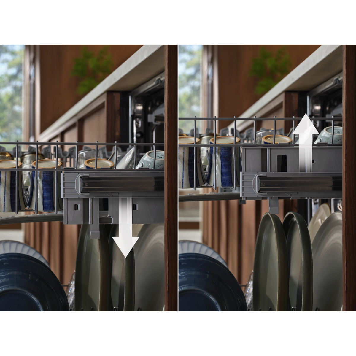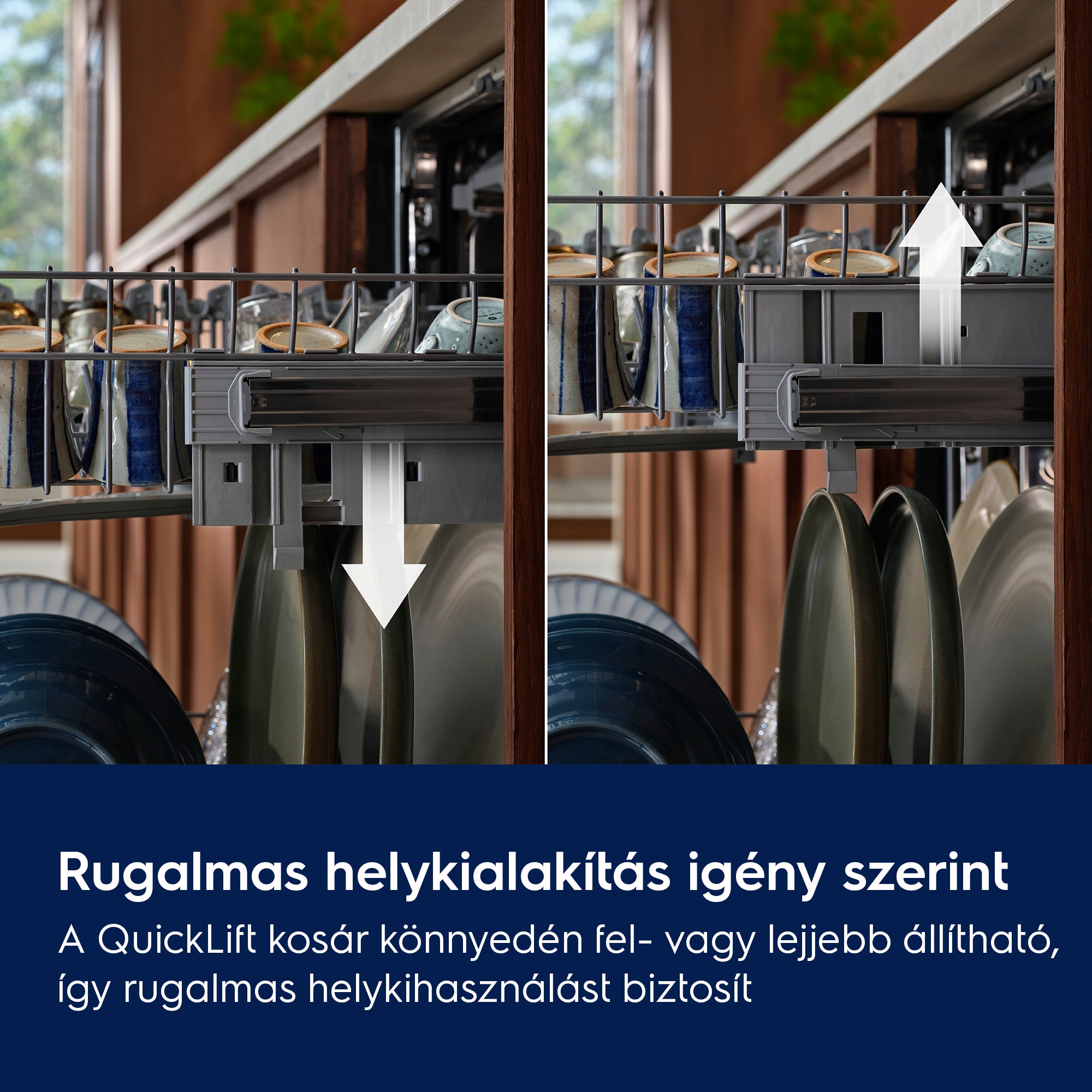 Az állítható felső kosár segít a rendelkezésre álló tér rugalmas kihasználásában
