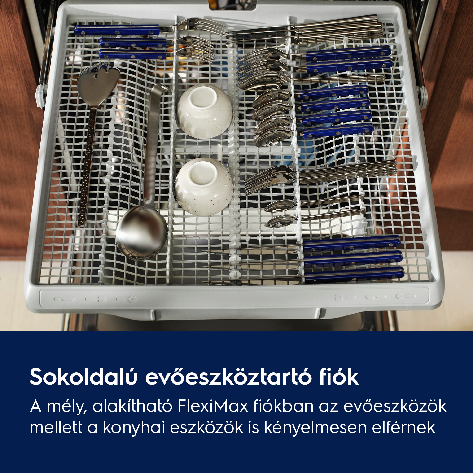 A sokoldalú fiók minden evőeszköznek és konyhai eszköznek helyet ad