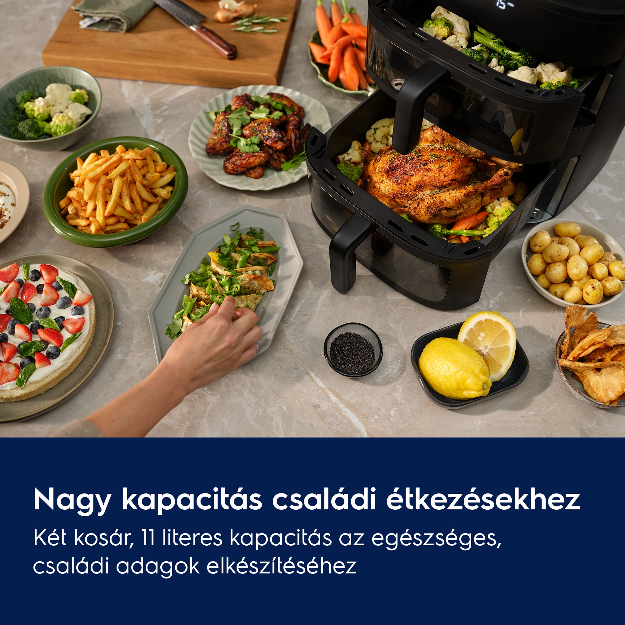Két kosár, XXL kapacitás az egészséges, családi adagok elkészítéséhez