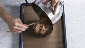 Törjön három tojást a robotgép keverőtáljába, adja hozzá a cukrot, és keverje addig, amíg a cukor feloldódik. Tegye fel a robotgépre a habverő fejet, és keverje addig, amíg a térfogata a háromszorosára nem nő. Az Electrolux Assistent robotgép pár perc alatt kikeveri Önnek a krémet. Ezután szitálja össze a burgonyakeményítőt liszttel, kakaóporral és sütőporral. Majd kis adagokban keverje a száraz összetevőket a felvert tojásos keverékbe. Öntse a híg tésztát 16 cm átmérőjű kapcsos tortaformába.