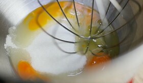 A tojásokat egy keverőtálba ütjük, hozzáadjuk a cukrot, és egy habverővel az egészet fehéredésig keverjük, míg szép habos nem lesz. A lisztet átszitáljuk, hozzáadjuk a cukros tojáskrémhez, majd vékony sugárban beleöntjük a langyos olvasztott vajat, valamint a joghurtot, és alaposan kikeverjük. A sütőport, a kakaóport és a tejet szintén hozzáadjuk, és szép homogén masszává keverjük.
