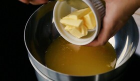 A narancskrémhez a vajat, a cukrot, a narancs kifacsart levét és lereszelt héját indukciós főzőlapon összemelegítjük vízgőz fölött egy tálban, majd beleütjük a tojást, és addig kevergetjük, amíg besűrűsödik. Félrerakjuk, és hagyjuk teljesen kihűlni.
