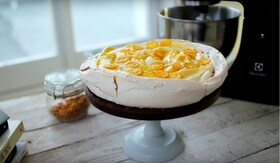 A felvert habot a sütőpapírral bélelt sütőlapra kenjük korong alakban úgy, hogy az oldalai kissé magasabbak legyenek, helyet csinálva a krémnek. Előmelegített sütőbe tesszük. és 45 percig sütjük, amíg a habcsók külső kérget kap, de belül még puha. Elzárjuk a sütőt, ajtaját kitámasztjuk és további 1 órán át bennehagyjuk a pavlovát. Légmentesen lezárt dobozban tárolva 1 napig eláll.