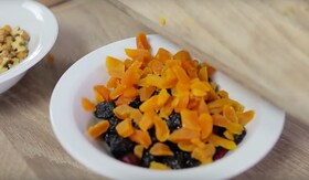 Válasszunk minél jobb minőségű, magas kakótartalmú csokoládét! A diót és az aszalt gyümölcsöket falatnyi darabokra aprítjuk és felhasználásig félretesszük.