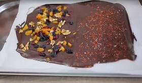 Egy tiszta száraz tepsire öntjük a csokoládét és spatulával a kívánt vastagságban szétterítjük. Megszórjuk a kiválasztott feltétekkel és a hűtőbe tesszük, amíg teljesen megdermed a csokoládé. A hűtőből kivéve feldaraboljuk, és becsomagoljuk.