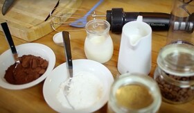 2 ek. nádcukor, 2 ek. keményítő, 2 ek. cukrozatlan kakaópor, 3,5 dl tej, 1,5 dl tejszín, 20 dkg tejcsokoládé, 1 csipet só