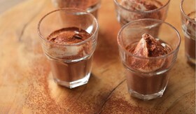 Poharakba öntjük, és összegyűrt, nedves sütőpapírral letakarjuk, közvetlenül a puding tetejére tapasztva a papírt, hogy ne bőrösödjön. Hűtőben 1-1 1/2 óra alatt fogyasztható hőmérsékletűre hűtjük. A hideg habtejszínt a cukorral és 1/2 vaníliarúd kikapart magjával kemény habbá verjük.