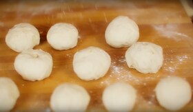 A kész tésztát meghintjük egy kevés liszttel, letakarjuk és szobahőmérsékleten 1 óra alatt megkelesztjük. A megkelt tésztát lazán átgyúrjuk, hengert formázunk belőle és 12 egyenlő részre vágjuk. Minden szeletből kis bucit formázunk, meghintjük liszttel és letakarva további 15 percig kelesztjük. A bucikat kör alakúra nyújtjuk, mindegyiket megkenjük kevés mascarponéval és szárított sonkát rakunk rá.