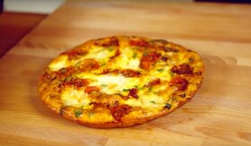 Ezután a serpenyőt berakjuk a sütőbe és grill fokozaton, 200 fokon további 8-10 percig sütjük, amíg a tojás teljesen összeáll, és a mozzarella megolvad. A kisült frittatát kiborítjuk a serpenyőből, és szeletekre vágva szervírozzuk forrón, vagy akár hidegen is.