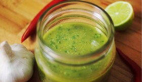 1 nagy csokor petrezselyem, 1 chilipaprika, 2 nagy gerezd fokhagyma, 1 citrom vagy lime