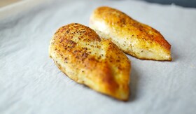 A mézes csirkéhez a sütőt előmelegítjük 150 fokra, az egész csirkemelleket pedig sózzuk-borsozzuk, majd egy jó forró serpenyőben kevés olajon szép aranybarna kérget sütünk rá, 30 másodpercenként megfordítva a húsokat (mintha egy sztéket sütnénk). Belül nem szabad teljesen elkészülnie a csirkének, mivel a melleket most kivesszük a serpenyőből (ez fontos, mert a forró serpenyőben kiszáradnának), és egy sütőpapírral bélelt tepsire helyezve bedobjuk a forró sütőbe kb. 10 percre, míg teljesen elkészülnek.