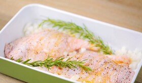 A vöröshagymát apróra vágva mellé szórjuk, hozzáadjuk a mézet, mellérakjuk a rozmaringágakat és ráöntjük a fehérbort. 175 fokos sütőben kb. 1,5 - 2 órán át sütjük.