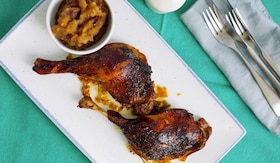 A kacsacombokat sóval és borssal bedörzsöljük és egy hőálló tálba rakjuk.
