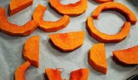 1) Elkészítjük a sütőtököt és az édesburgonyát