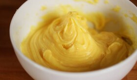 1,5 dl étolaj, 1 tojássárgája, 1 teáskanál mustár, só, bors, citromlé