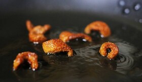 A kacsamell bőrét eltávolítjuk, és kis darabokra vágjuk. Közepesen forró serpenyőben kisütjük a zsírját, majd a ropogós töpörtyűt félretesszük. A visszamaradt kacsazsír felét leöntjük, a maradékon pedig finomra vágott hagymát, és szeletekre vágott fokhagymát párolunk. A kacsamellet hosszában félbevágjuk, és kis kockákat vágunk belőle.