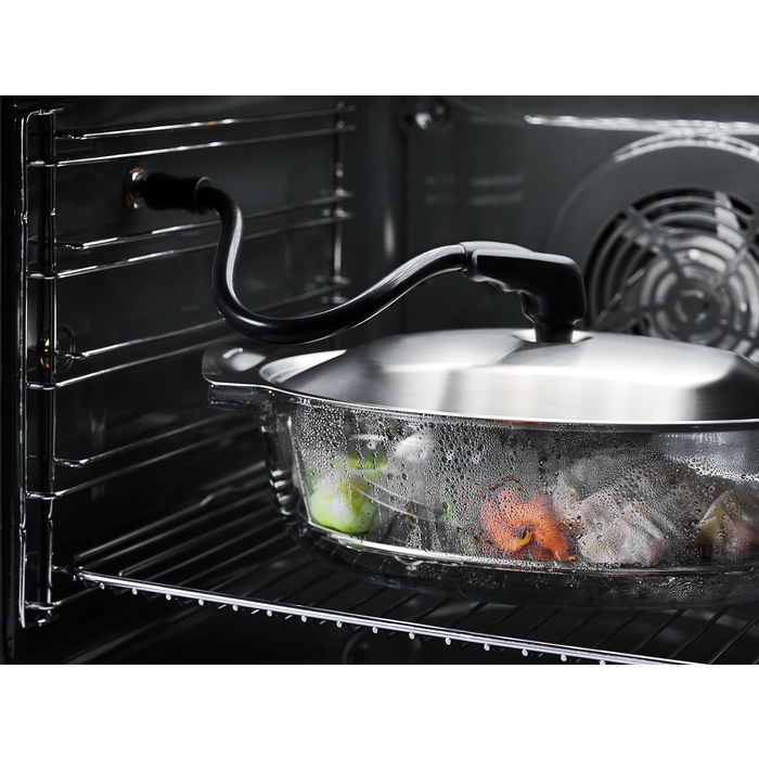 Fedezze fel a gőz előnyeit a 700-as sorozatú SteamCrisp® gőzsütővel! A páradús levegő lehetővé teszi, hogy alacsonyabb hőmérsékleten süssön, így az ételek nem száradnak ki. Az eredmény: ropogós külső és omlósan puha belső.