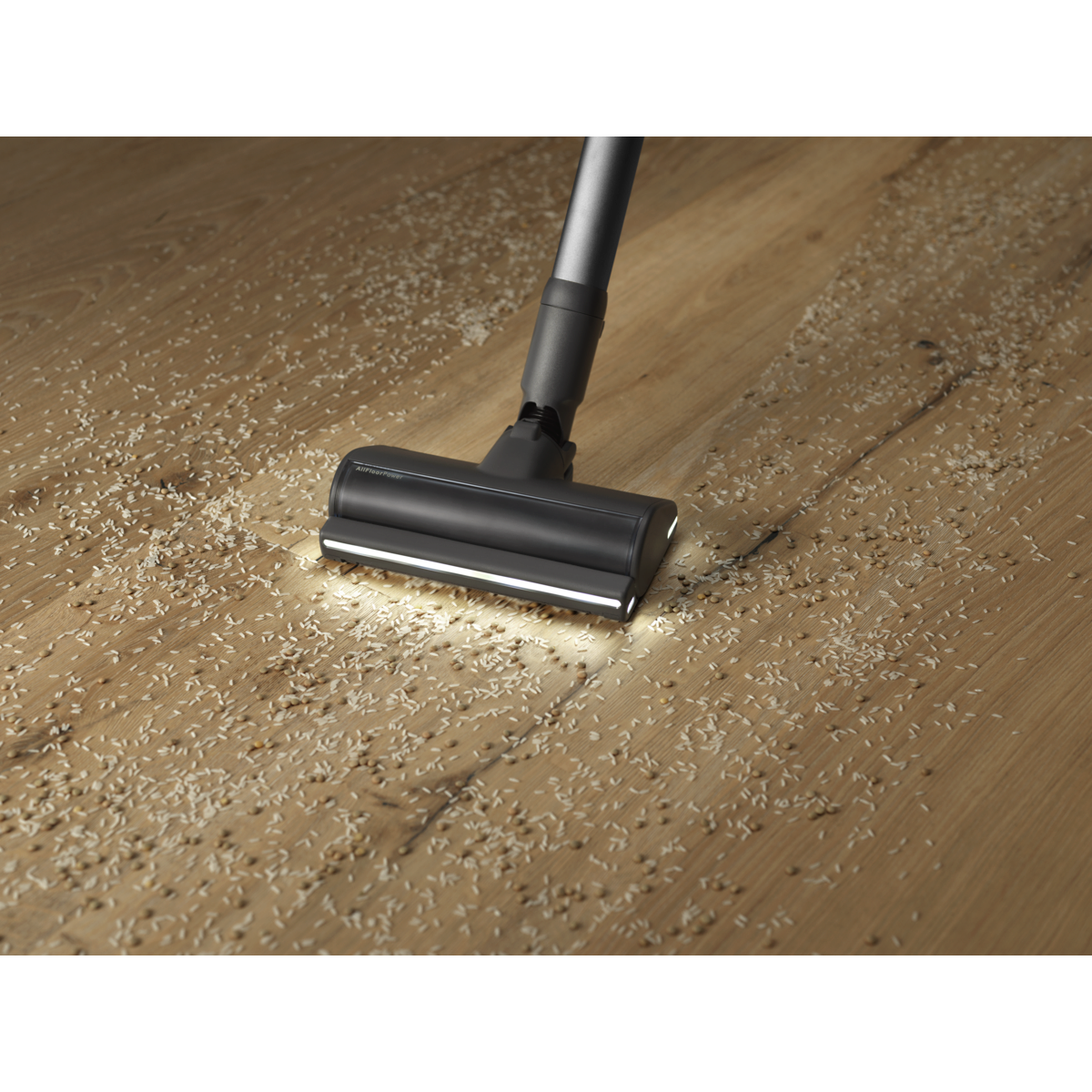 Az új AllFloor Power szívófej akár 100%‑os porfelszedést biztosít.* A nagy teljesítményű, kefe nélküli motor és az innovatív gumicsíkok minden irányban hatékony tisztítást biztosítanak a gyorsabb takarításért. A 360°‑os LED‑világítás láthatóvá teszi a rejtett port is. Az Anti‑Tangle rendszer automatikusan eltávolítja a hajszálakat a keféről.