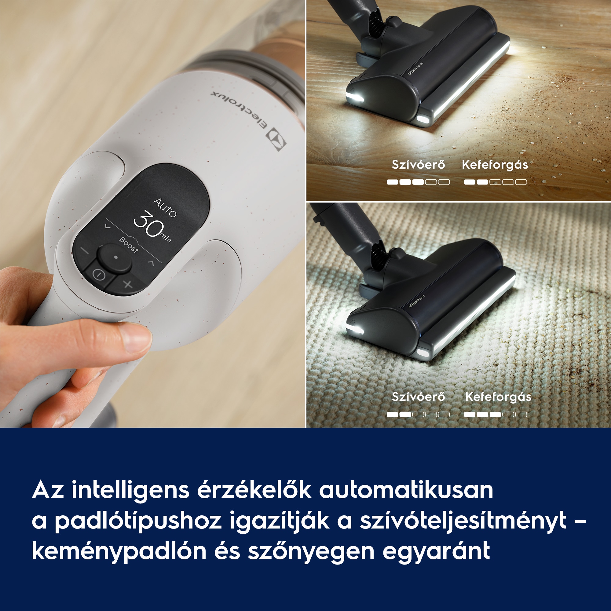 Két érzékelési mód optimalizálja a porfelszedést minden padlótípuson