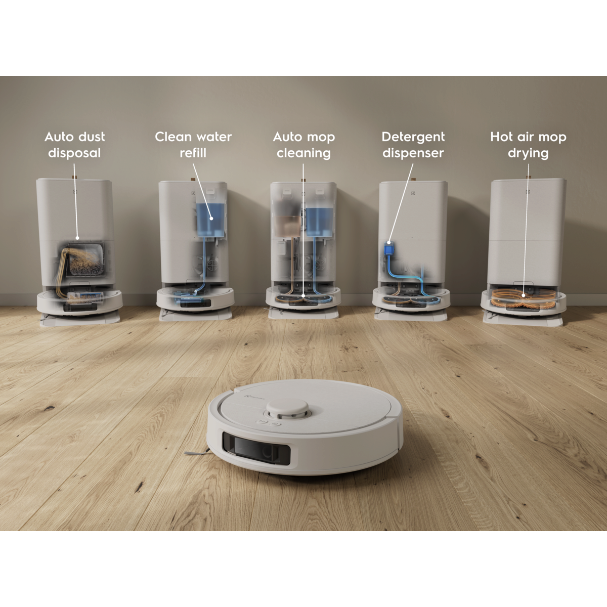 Felejtse el a porszívózást és a felmosást. A 800-as robotporszívó All-in-One dokkolóállomással akkor is elvégzi a takarítást, amikor Ön nincs otthon. Állítsa be, a többit bízza a robotra, amely könnyedén eligazodik a bútorok alatt, kitakarítja a szőnyegeket, felmossa a padlót és összegyűjti a port.