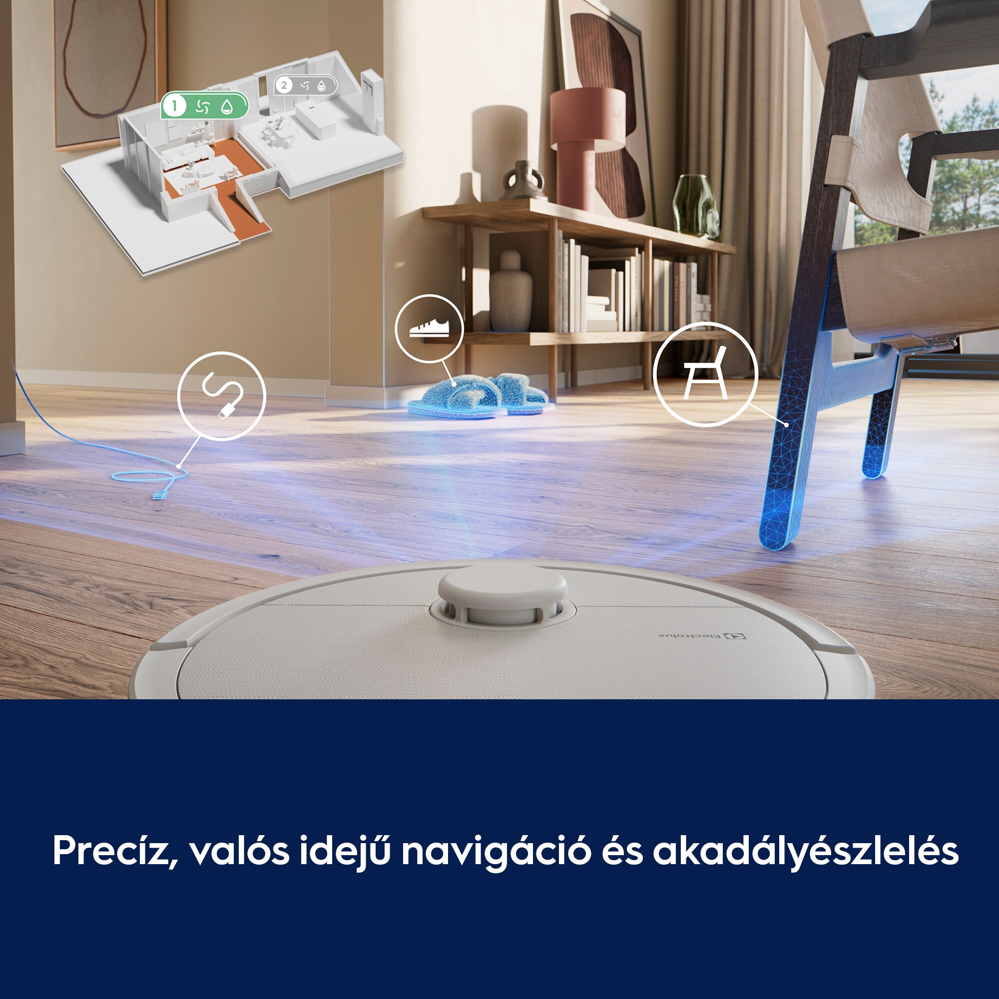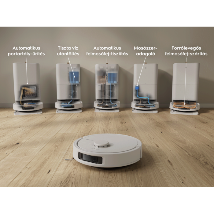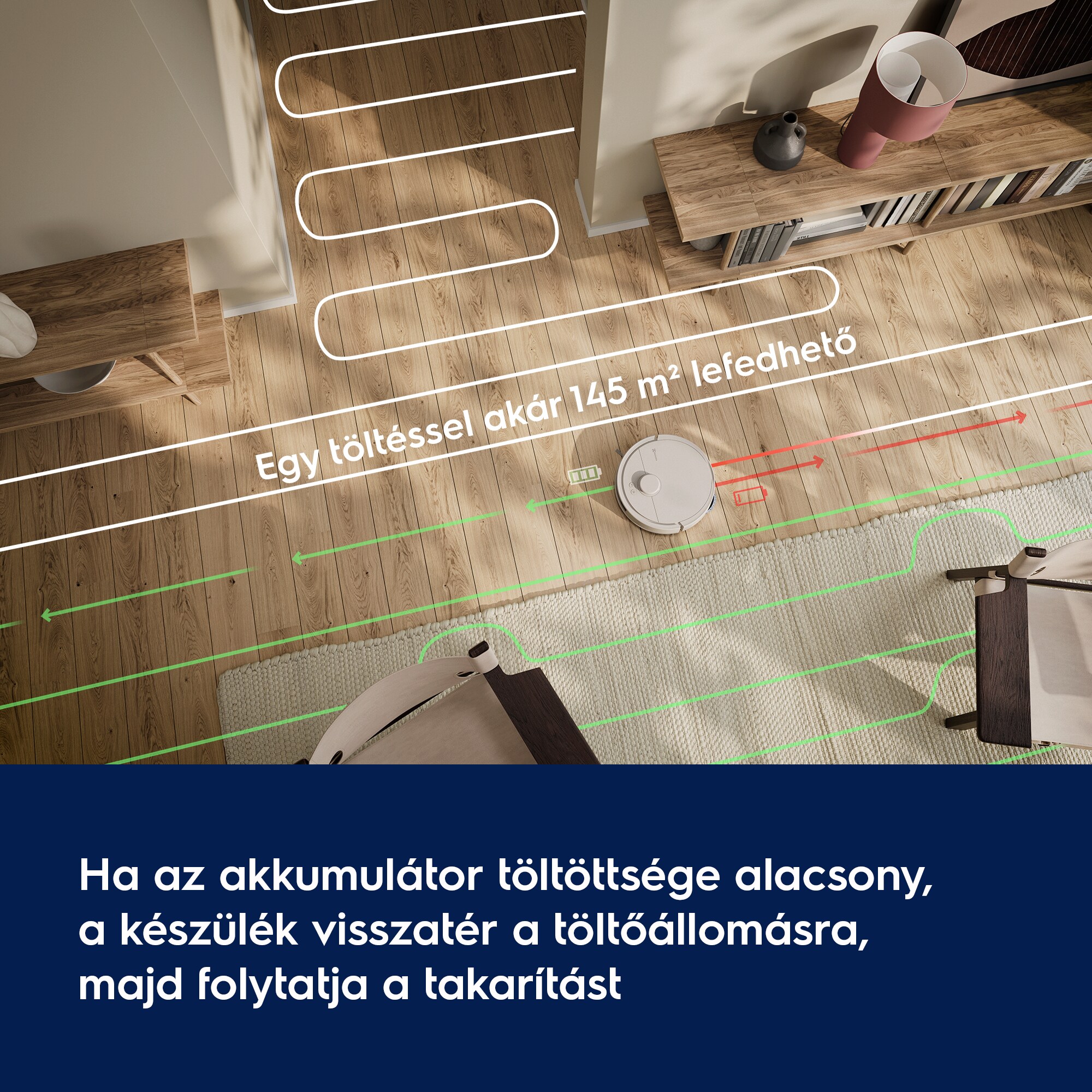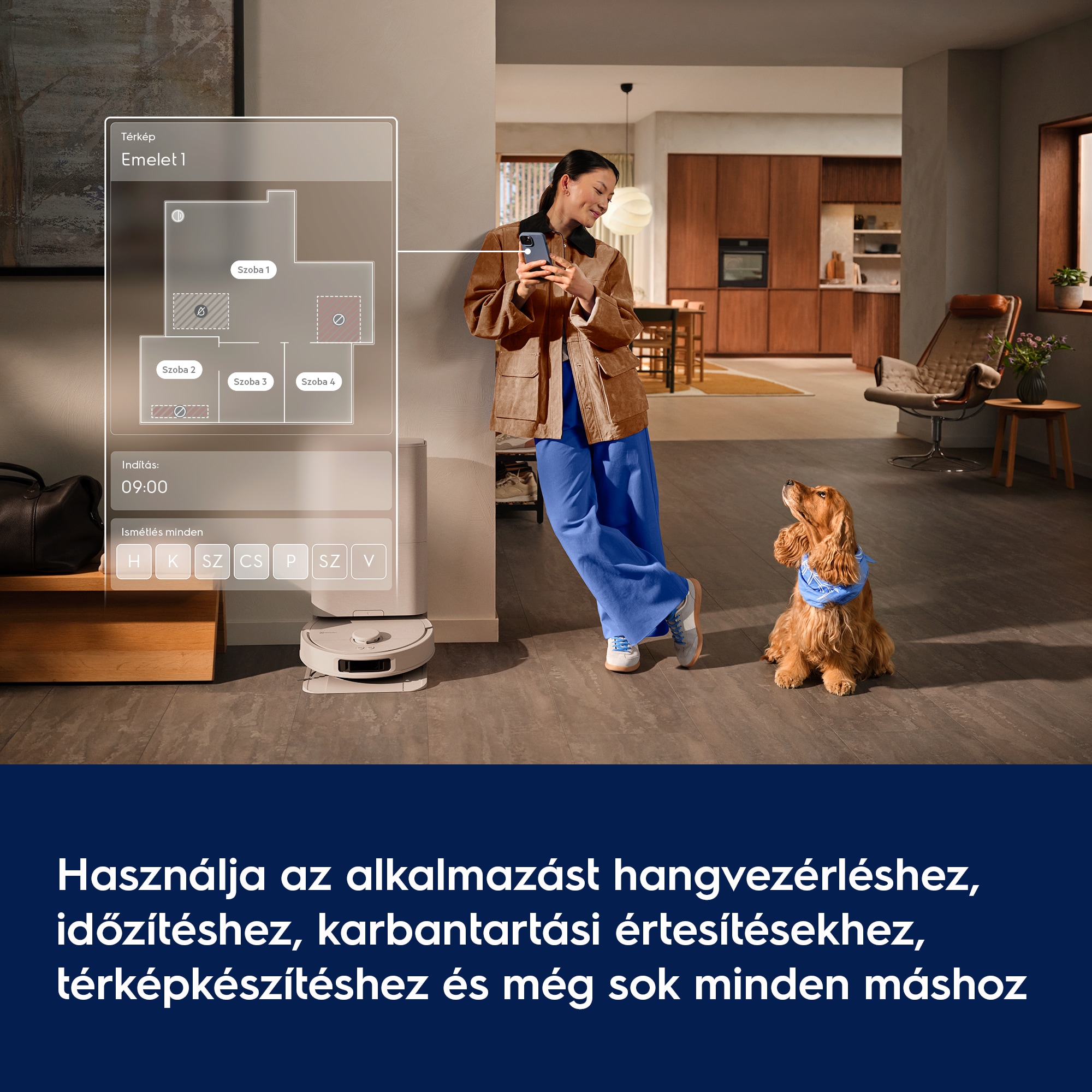 Felejtse el a porszívózást és a felmosást. A 800-as robotporszívó All-in-One dokkolóállomással akkor is elvégzi a takarítást, amikor Ön nincs otthon. Állítsa be, a többit bízza a robotra, amely könnyedén eligazodik a bútorok alatt, kitakarítja a szőnyegeket, felmossa a padlót és összegyűjti a port.
