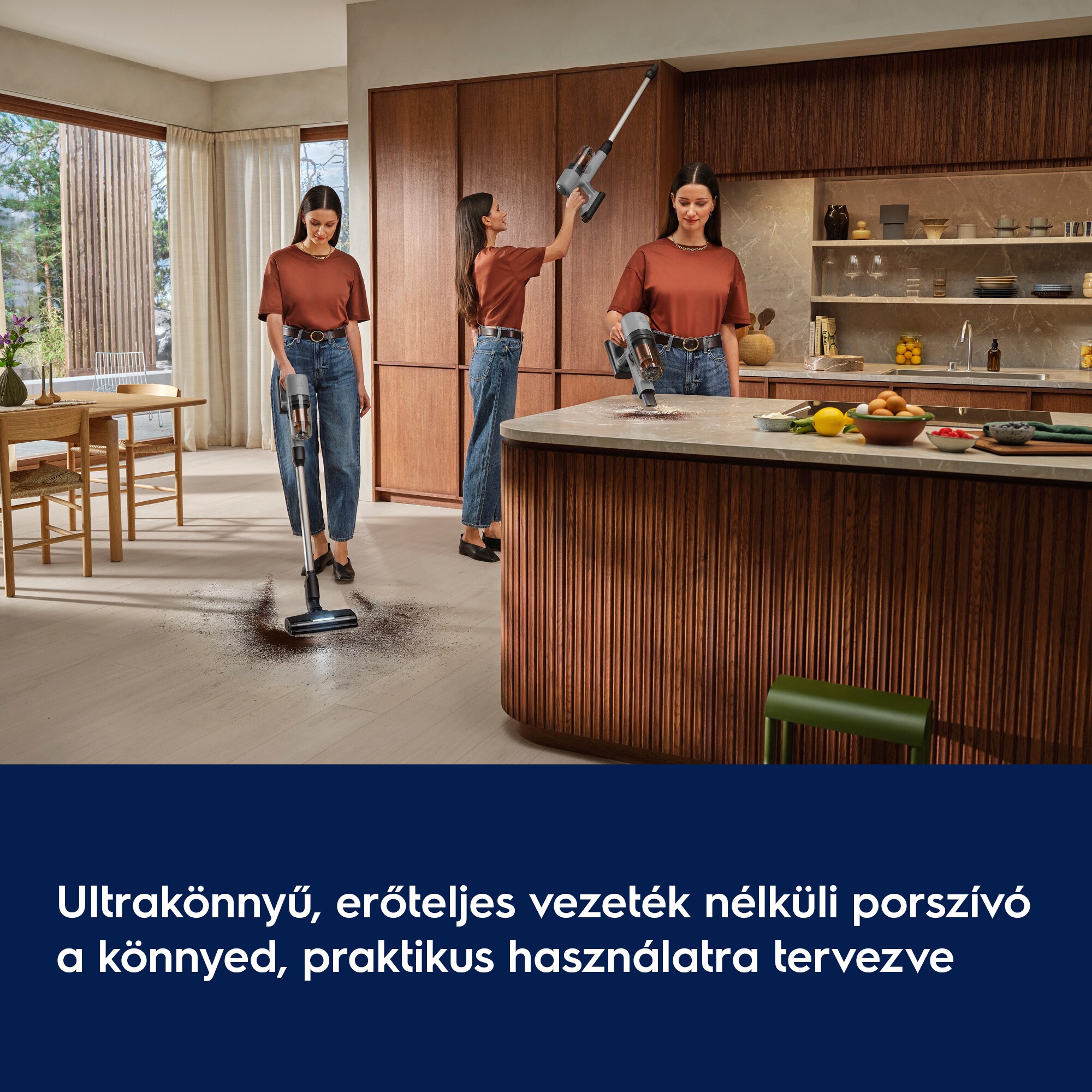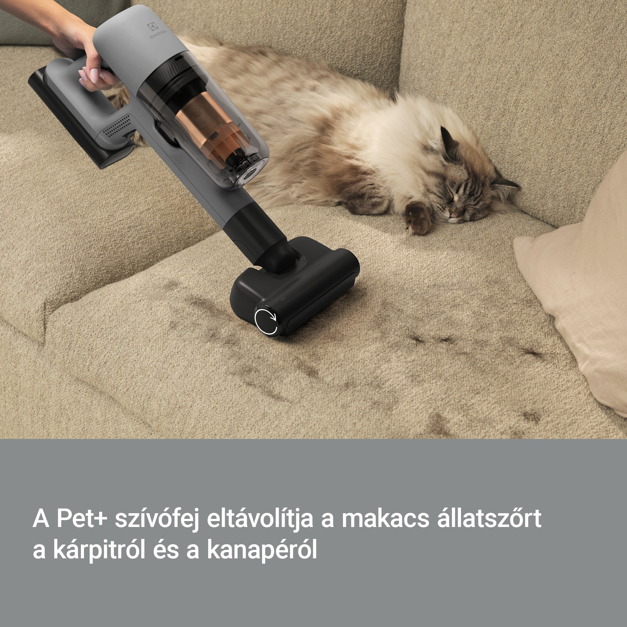 A nagy teljesítményű, mégis könnyű 700-as vezeték nélküli porszívó kiváló megoldás a kisállattartóknak. Erős szívóerejével és a Pet+ szívófejjel a szőr minden felületről könnyedén eltávolítható, otthon és az autóban is.
