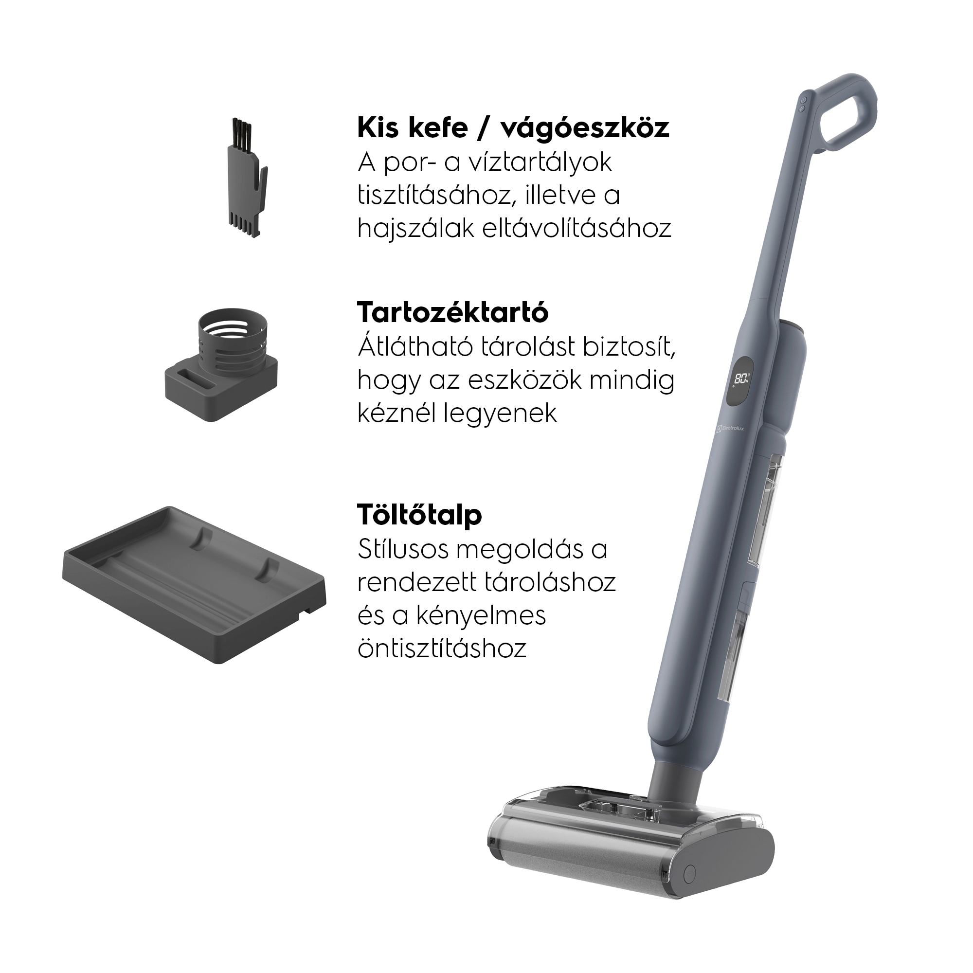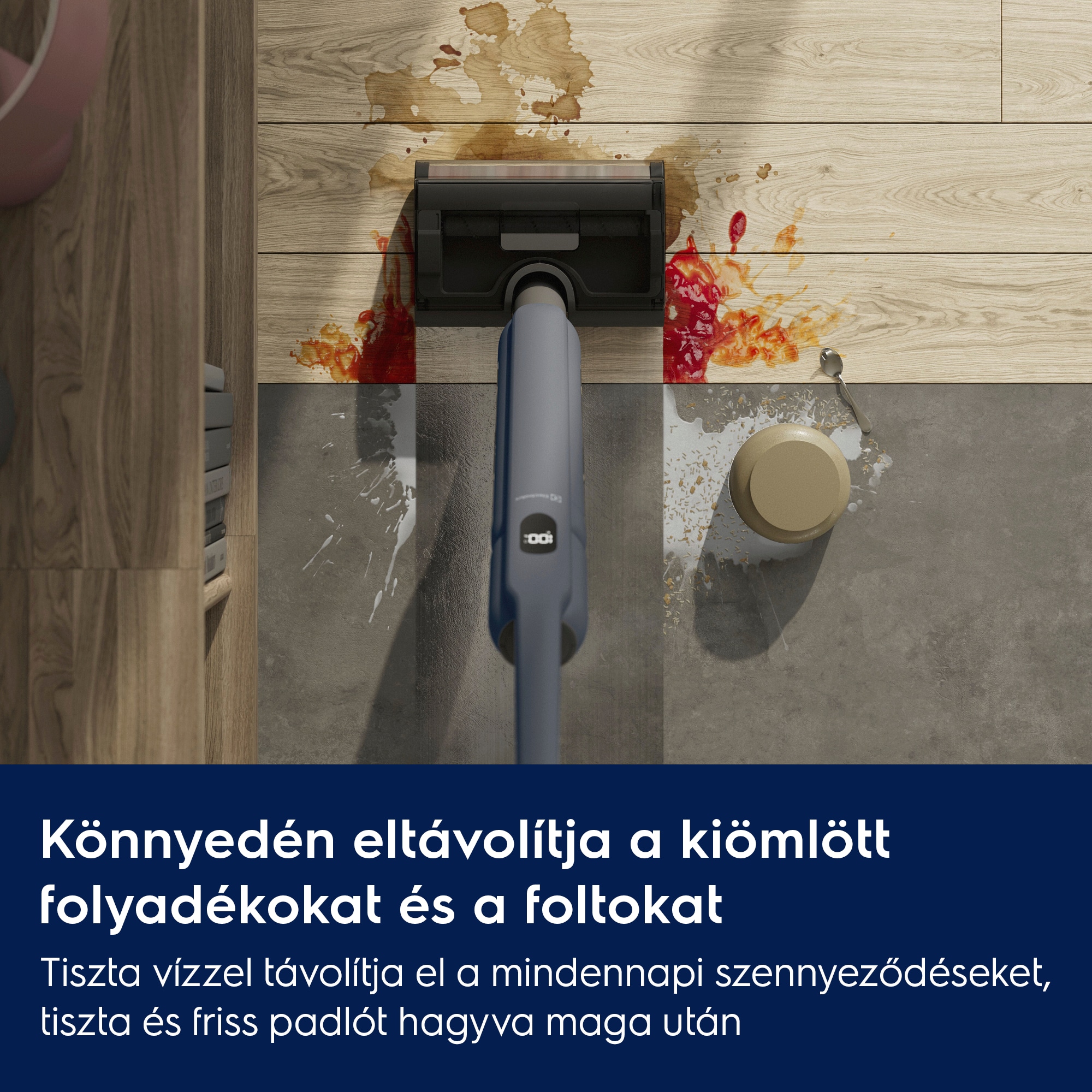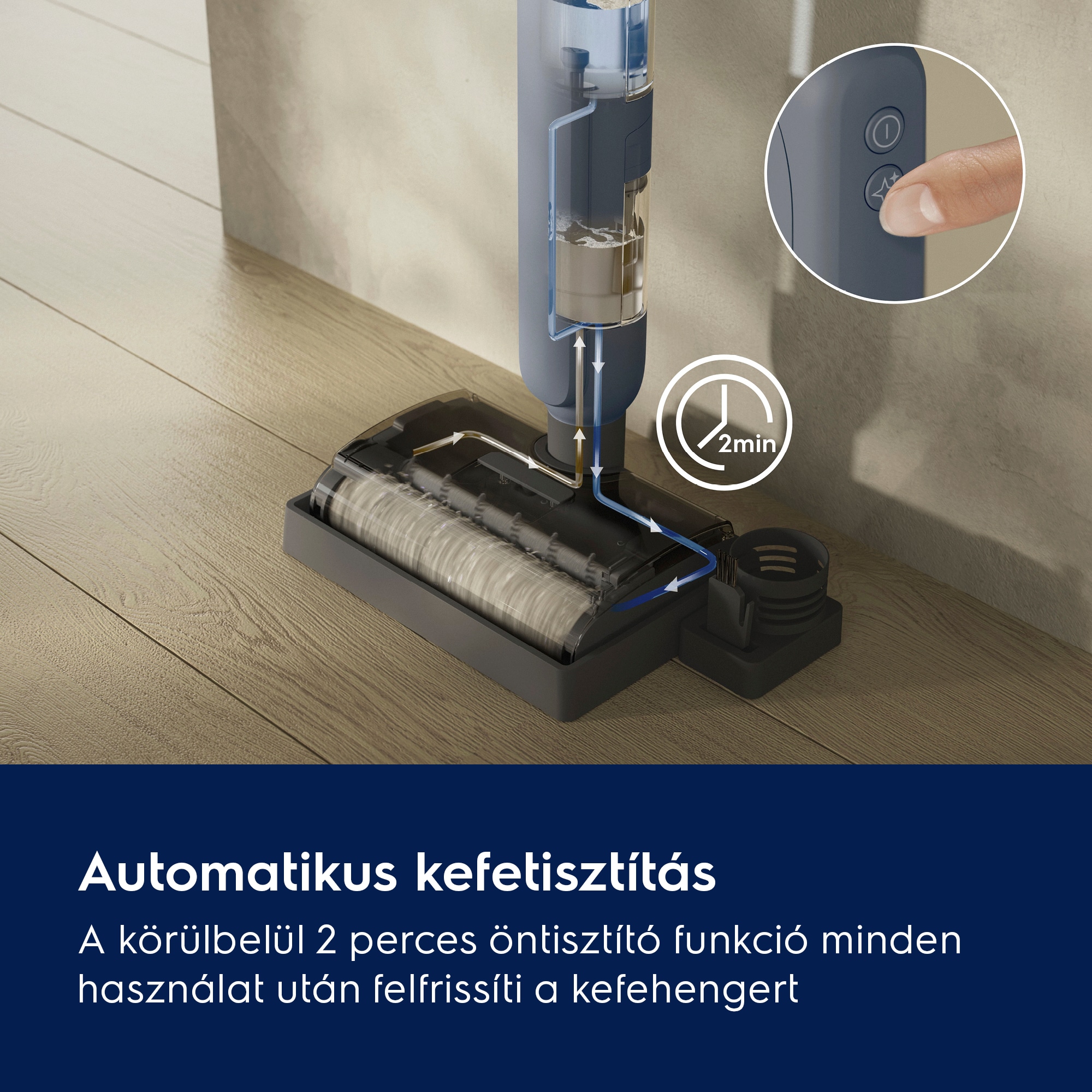*Belső tesztek alapján, kemény-, és sík padlón végzett folteltávolítás során, hagyományos felmosófejhez és vödörhöz viszonyítva, az IEC 62885-6 szabványnak megfelelően.